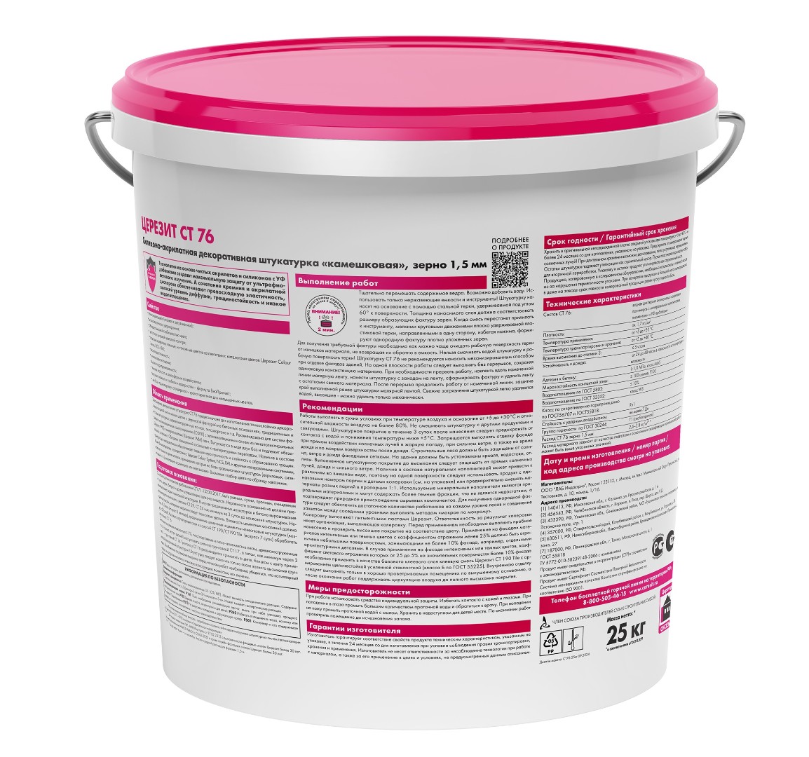 Описание товара: "Штукатурка Ceresit силиконовая эластомерная СТ 76 1,5 мм "камешковая", база (25 кг)"