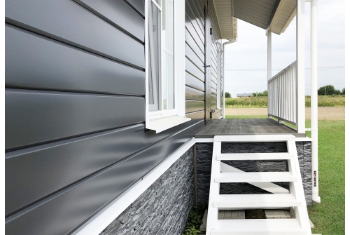 - При использовании покрытия Colority® Print, «ЭкоБрус GL» достигает максимального сходства с клееным брусом. Надежное скрытое сцепление панелей придает фасаду здания естественный вид.