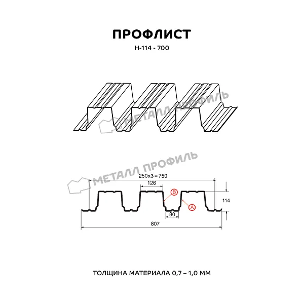 Описание товара: "Профнастил Н114 x 750 A покрытие ПЭ 01 RAL 9003 0,9 мм"