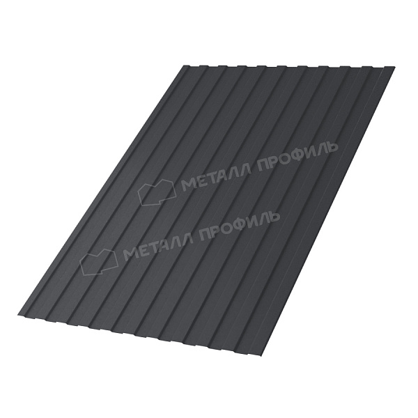 Профлист МЕТАЛЛ ПРОФИЛЬ С-8х1150-A (PureTech_Mat-20-7024-0,5) — популярный материал для обустройства забора. Изначально он представляет собой стальной оцинкованный лист с покрытием. Общая толщина металла с оцинковкой и декоративно-защитным покрытием составляет 0.5 мм. После проката на специальном оборудовании сталь приобретает рисунок из ритмичных волн. Такая форма придает профилю несущую способность.